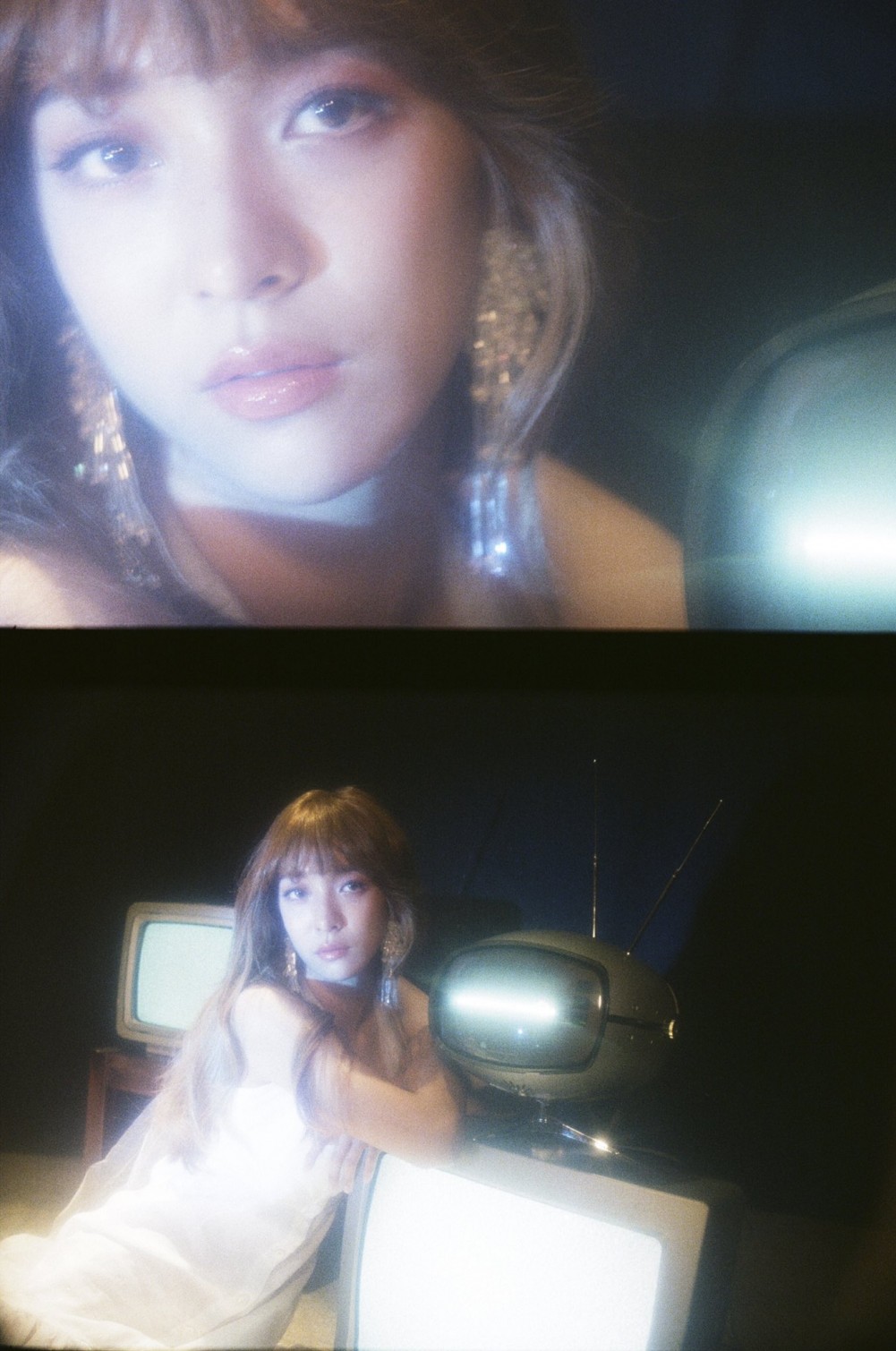 In the images, which were released on December 28, the f(x) member is a vision in white as she poses seductively next to retro television sets. With dangling diamond earrings and long, tousled hair, she gives off the vibe of vintage glamour, piquing anticipation and curiosity about what kind of song the self-composed single "Even So" is going to be.