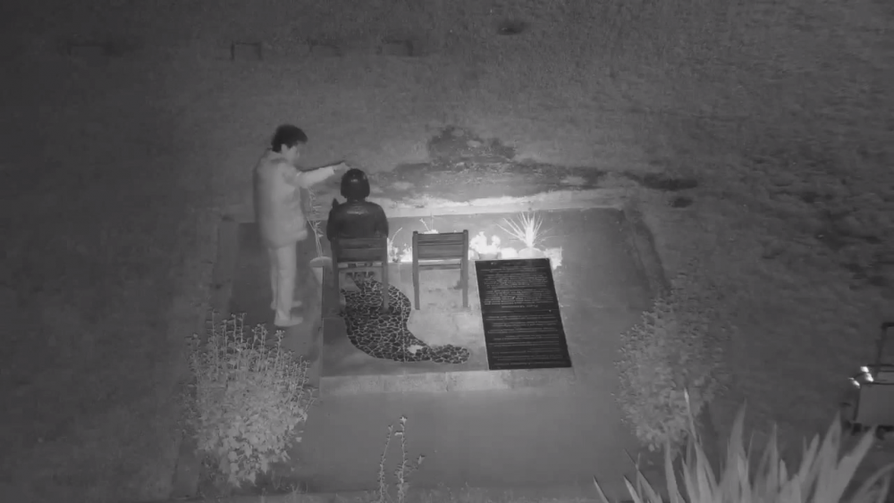 She is currently arrested on suspicion of felony vandalism. The footage of her defacing the memorial shows her knocking over plants as well as drawing on the statue. She is also seen drawing on the statues face using a permanent marker and setting a pot on the statue's head.