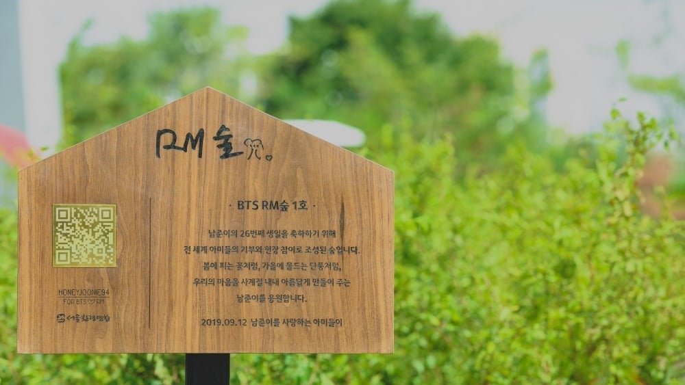 On August 31, approximately 250 fans gathered to build a forest named “BTS RM Forest No. 1” for rapper's upcoming birthday. The forest was planted in front of the clock tower at the Jamsil Hangang Park.