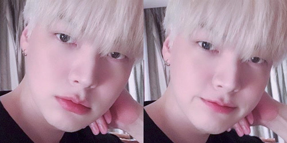 Accompanied by a simple, laughing emoji, Ahn Jae Hyun shared a series of selcas rocking a stark, blonde hairdo, as well as a small hoop piercing.