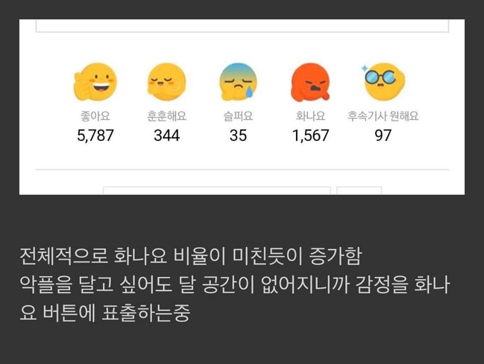 One netizen observed, "I think the 'angry' reactions have increased since the comment sections were deleted. They want to leave malicious comments but they can't so all they can do is express their frustrations with the 'angry' reaction."