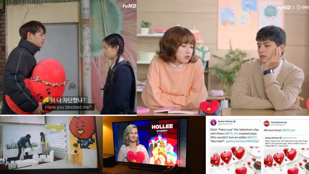 Also, TATA made a small cameo in the TVND drama 'The World of My 17' and caught the attention of the fans. TATA also made an appearance on Australian national TV broadcast on ABC TV's popular program 'Hard Quiz' where they brought up Tata dolls. TATA made another appearance on the wall made of Lego blocks on a TV program broadcasted on Arirang. TATA also appeared on Genius Kitchen, a U.S. food recipe website, and featured as a model for Valentine's Day.
