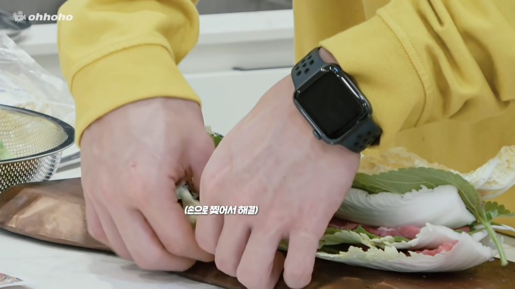 Wonho revealed he prepared a dish called "Mille-feuille Nabe." He told his fans this recipe is super easy and pulled out a prepackaged meal. The package included all the fresh ingredients need to cook the napa cabbage and beef dish.