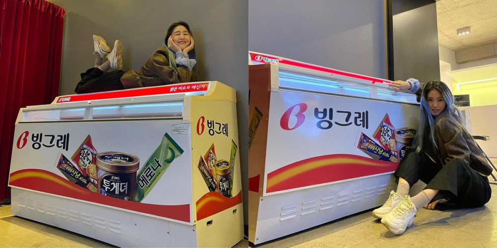A few days ago, Oh My Girl's Mimi excited took to her personal SNS to show off a commercial-sized gift she recently received from the Korean ice cream company, 'Binggrae'!