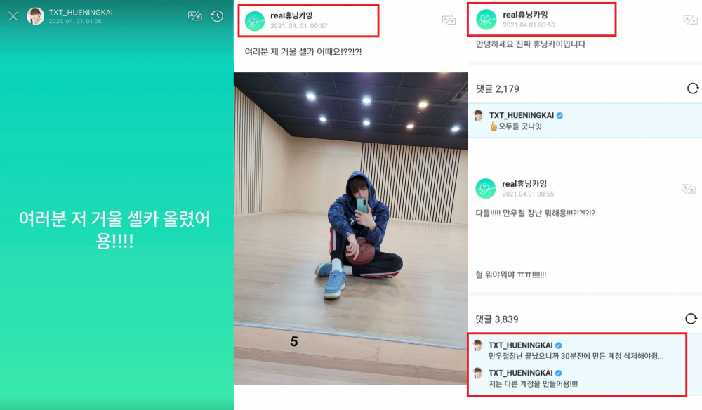 Soon, detective fans discovered Hueningkai's second account that he had created for April Fools' day. Hueningkai created an account with the username 'real Hueningkai' and posted the selfie photo on that account.