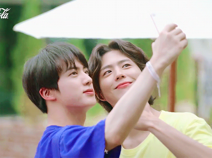 Yes, it's the selca that BTS's Jin and Park Bo Gum took together back in 2018, during their joint 'Coca-Cola' CF filming! For some reason or another, despite the fact that it's been nearly 3 years since BTS and Park Bo Gum worked together as 'Coca-Cola' models, the actual selca was never seen by fans - until now!