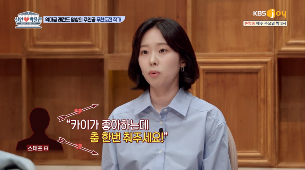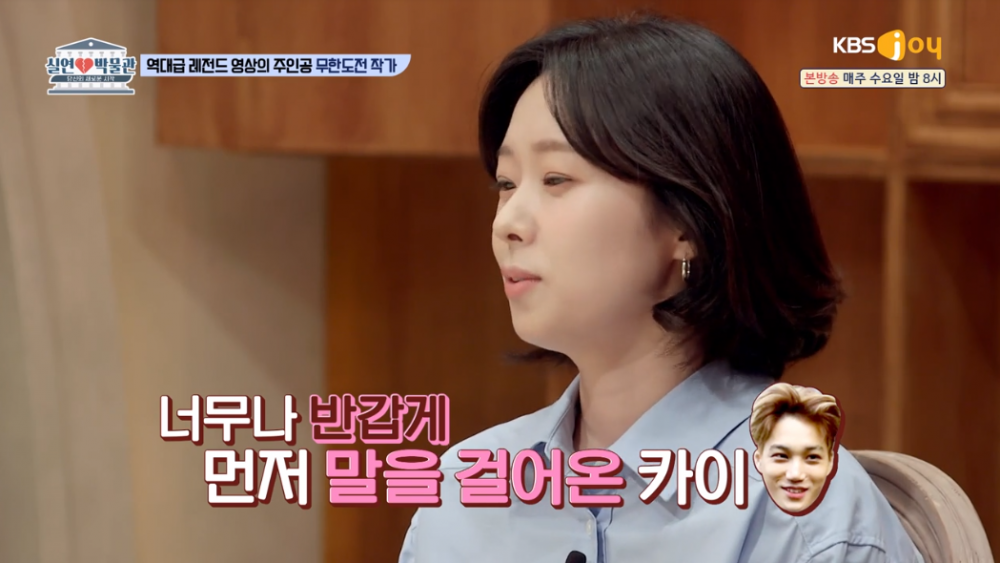 Kim Yoon Eui, the former writer of the popular variety show 'Infinite Challenge' appeared on the KBS Joy show 'The Museum of Broken Hearts' and shared a story about her encounter with EXO's Kai.