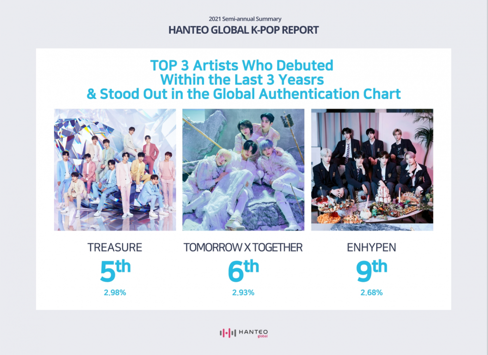 4th generation artists who demonstrated notable performance on Hanteo's 'Global Authentication Chart', measuring global fan power, included ATEEZ, TREASURE, TOMORROW x TOGETHER, Stray Kids, and ENHYPEN.