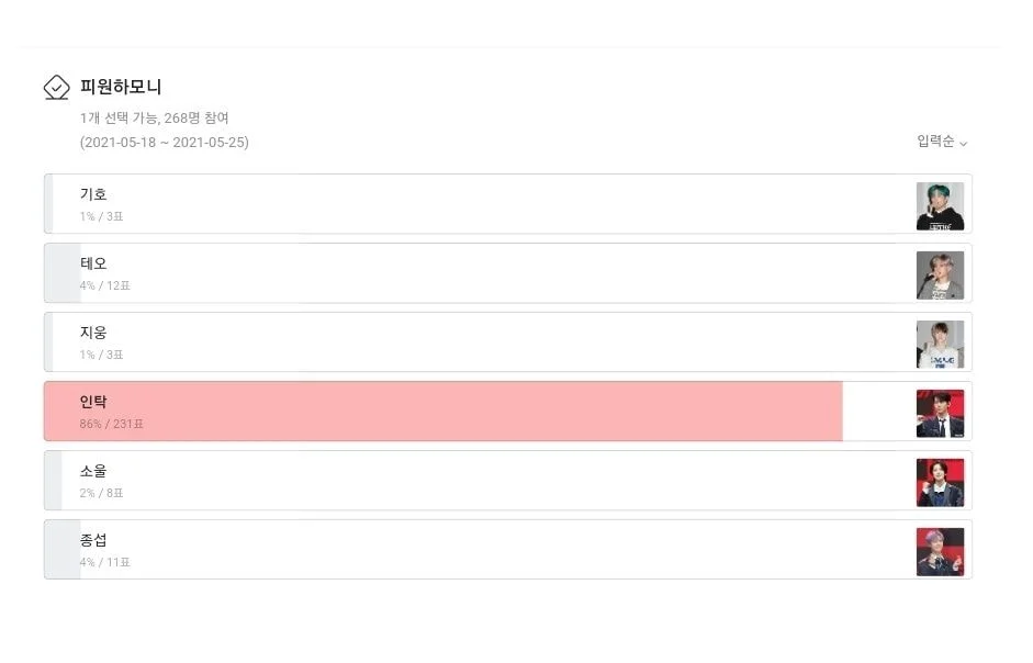 This was the same for P1Harmony as Intak took almost all the votes (86%) with 231 votes.