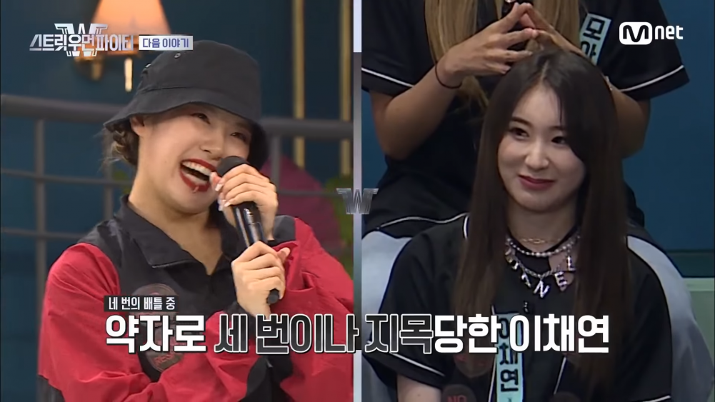 Each contestant is allowed to chose one other contestant they think is the weakest contestant on the show and do a 40-second one-to-one dance battle. On this day, Chaeyeon was called out four times to the dance floor.