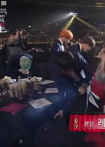 "V fell so the hyung went down on his knees too just to make him feel less embarrassed"