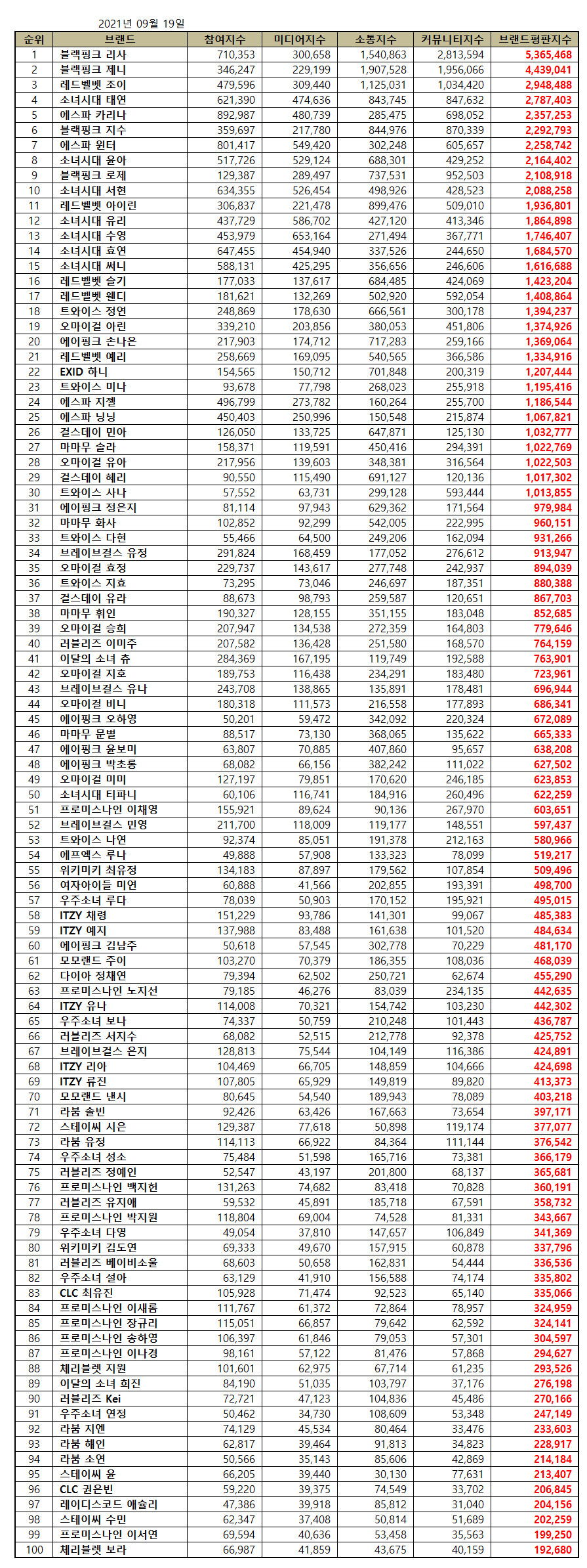 The Korea Institute of Corporate Reputation has released brand value rankings of individual girl group members, for the month of September!