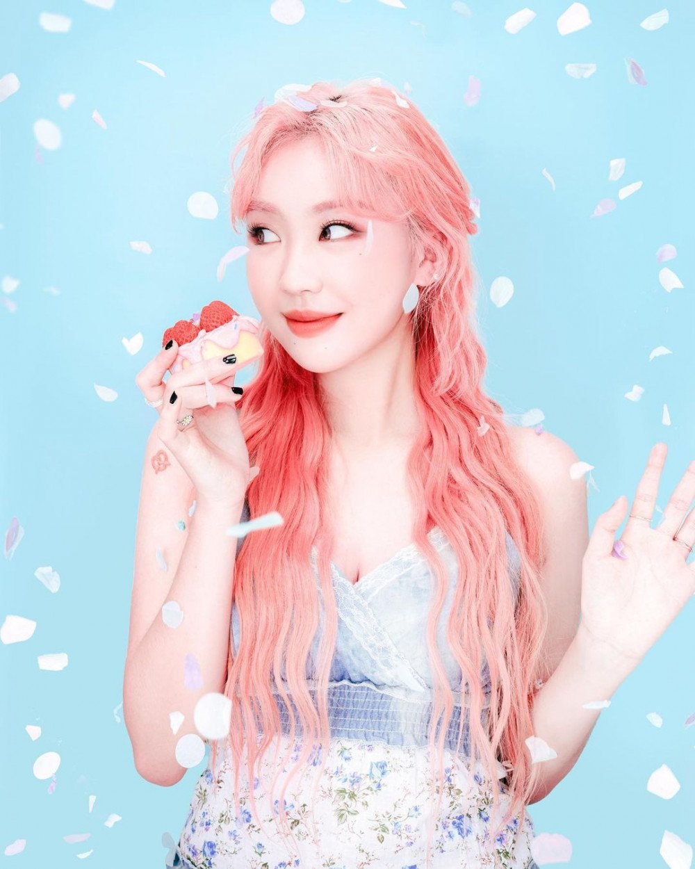 She is seen posing with a bouquet of flowers and a slice of strawberry cake in the photos. In addition to her beautiful photos, she excited fans with the announcement of a new track coming soon. Her fans commented, "Wow, she looks so stunning," "Is this Lee Young Ji from High School Rapper?" "She looks amazing," and "Wow, she completely transformed through the diet."