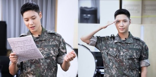 On September 16 KST, the military administration released several photos on their blog with an article titled, "SHINee's Taemin who became a private in the military band, filming site for 30 Q&As". In the photos, Taemin shows off a more mature look in his military uniform. A photo of Taemin saluting, scanning a music sheet, and playing the piano gave off both warm and charismatic vibes.