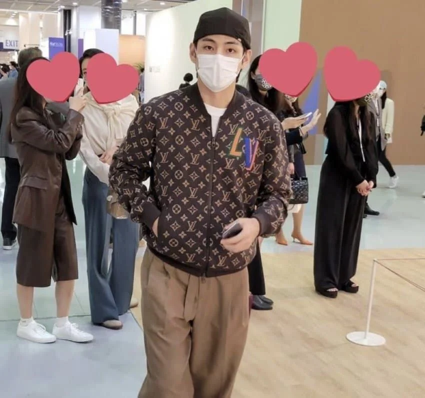 On October 14, one netizen shared various photos from the 'Korea International Art Fair (KIAF) 2021' event and explained that the atmosphere of the event was relaxed, and many photos were taken of V interacting with his fans.
