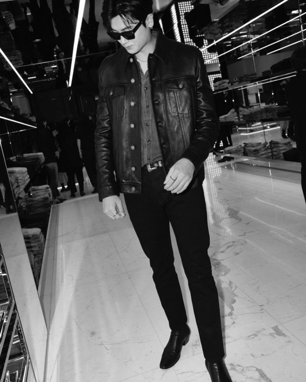 In the photos, the singer-turned-actor is seen wearing a black leather jacket and black slacks showing off his tall figure and stylish fashion.
