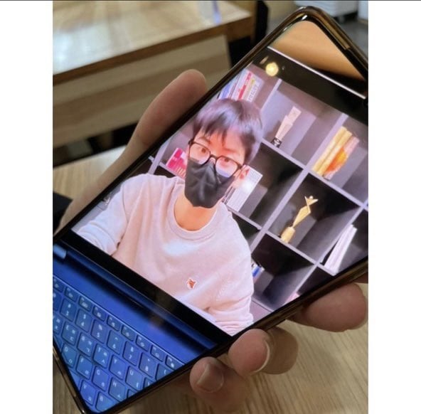 "My friend sent me a pic of a classmate named Lee Dong Min (Cha Eun Woo), entering class of 2016, who gave an English presentation that day. It looked like he was pretending he wasn't Cha Eun Woo. It's an online presentation but he still wore a mask and really big glasses.. But first, his eyes stand out way too much. And behind him, what's with the trophy? Also a college student wearing a 'Maison Kitsuné' crewneck? I mean I guess some college students do wear them but this is too cute. Just wait. When is he gonna attend in-person classes TT. I want to see my classmate Lee Dong Min in person.."