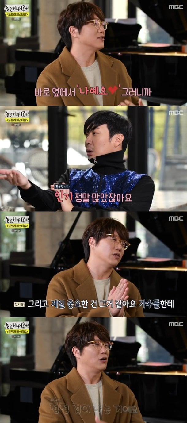 HaHa then said, "Recently, Sung Si Kyung looks up at the sky and talks about how lonely he is." Sun Si Kyung added, "I think I was more lonely because I was injured. I was drinking alcohol with my left hand, and I wondered what I was doing. I think it's also affecting me because I can't hold any concerts. It's been almost 2 years since I couldn't hold a concert, so it feels like I'm just a TV personality and not a singer."