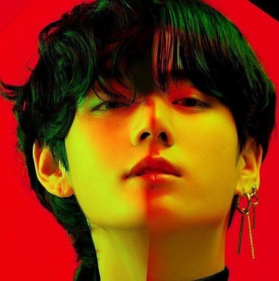 And, one of the images meshed Jungkook and V's photos together thorough a digital layering.