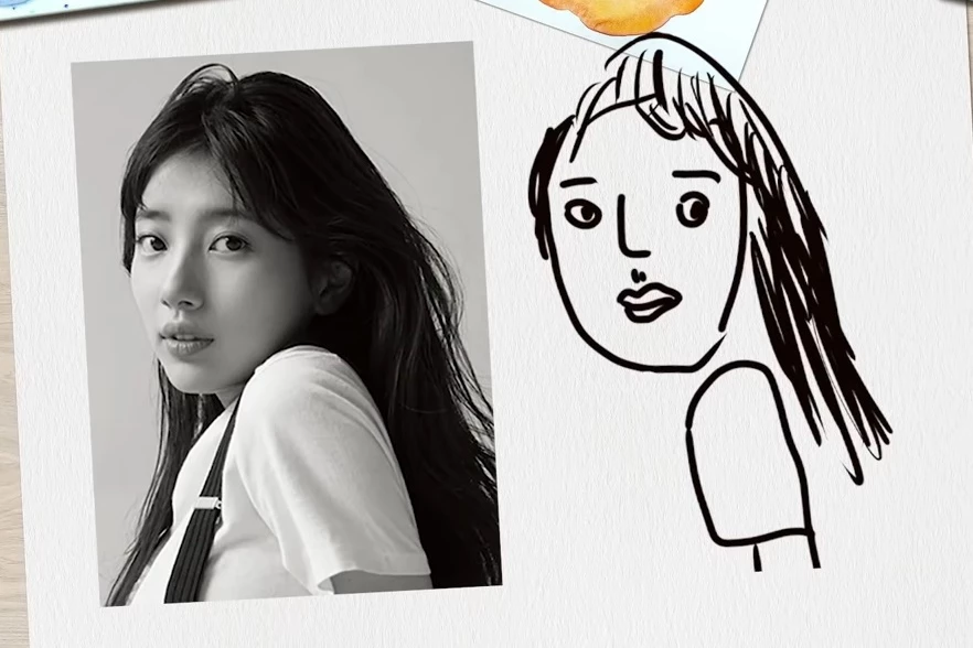 Soon after, Suzy sat down properly at a table and began drawing Choi Woo Sik in response to his drawing. She began drawing on the tablet and drew much attention from her fans and netizens as she showed off her skills.