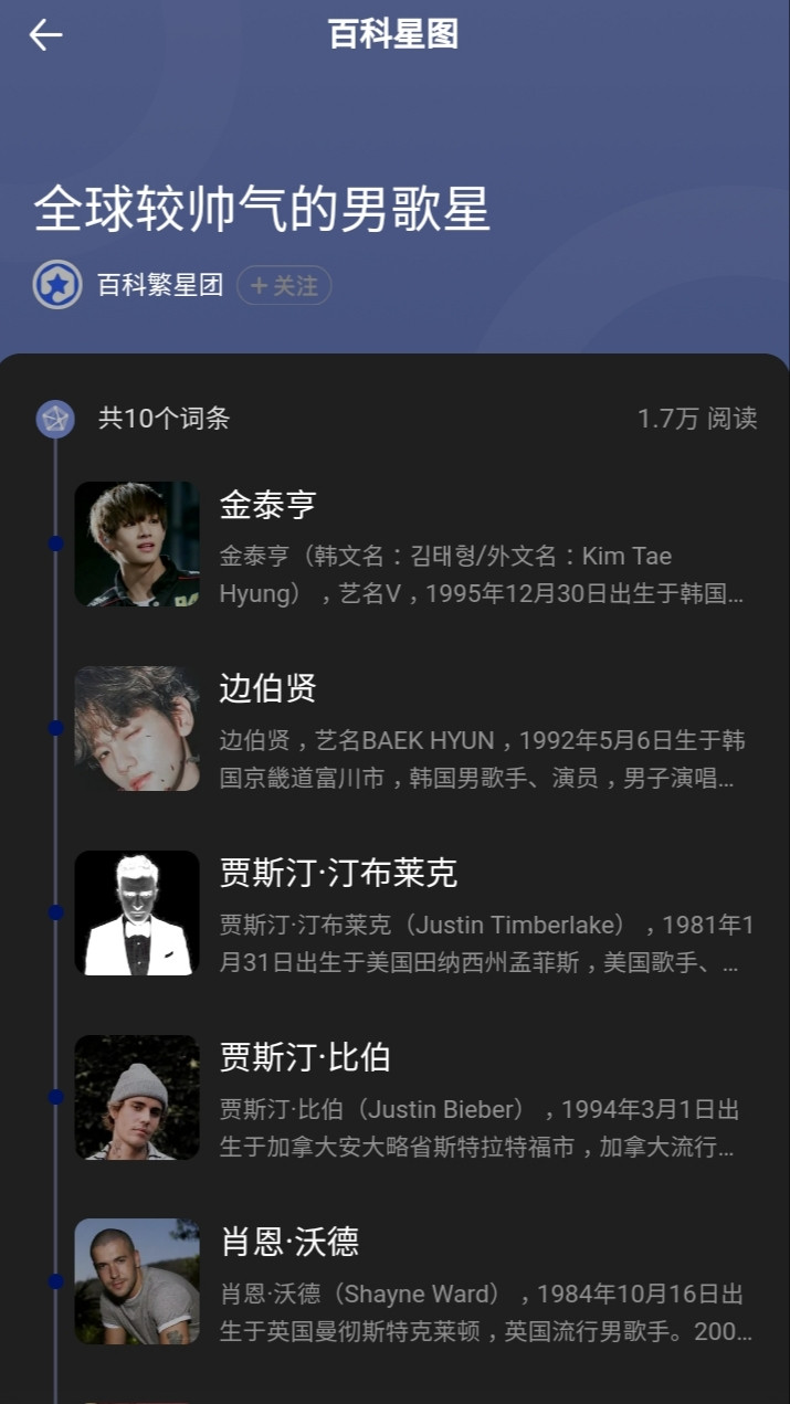 On 24 Mars, Baidu Encyclopedia released Star List of "Top 10 Most Handsome Singers In The World". BTS's V topped the list beating EXO's Baekhyun and Justin Timberlake, who ranked #2 and #3 respectively.