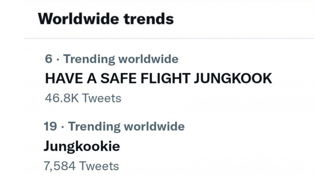 But to the fan's surprise, Jungkook had already left for the U.S. 'HAVE A SAFE FLIGHT JUNGKOOK' along with 'Jungkookie' took over the Worldwide trends as soon as it was revealed in a Korean media article that BTS Jungkook had already left the country early. 'Jungkook' also trended on Twitter with over 559K mentions, showing off how much he's loved and being missed.