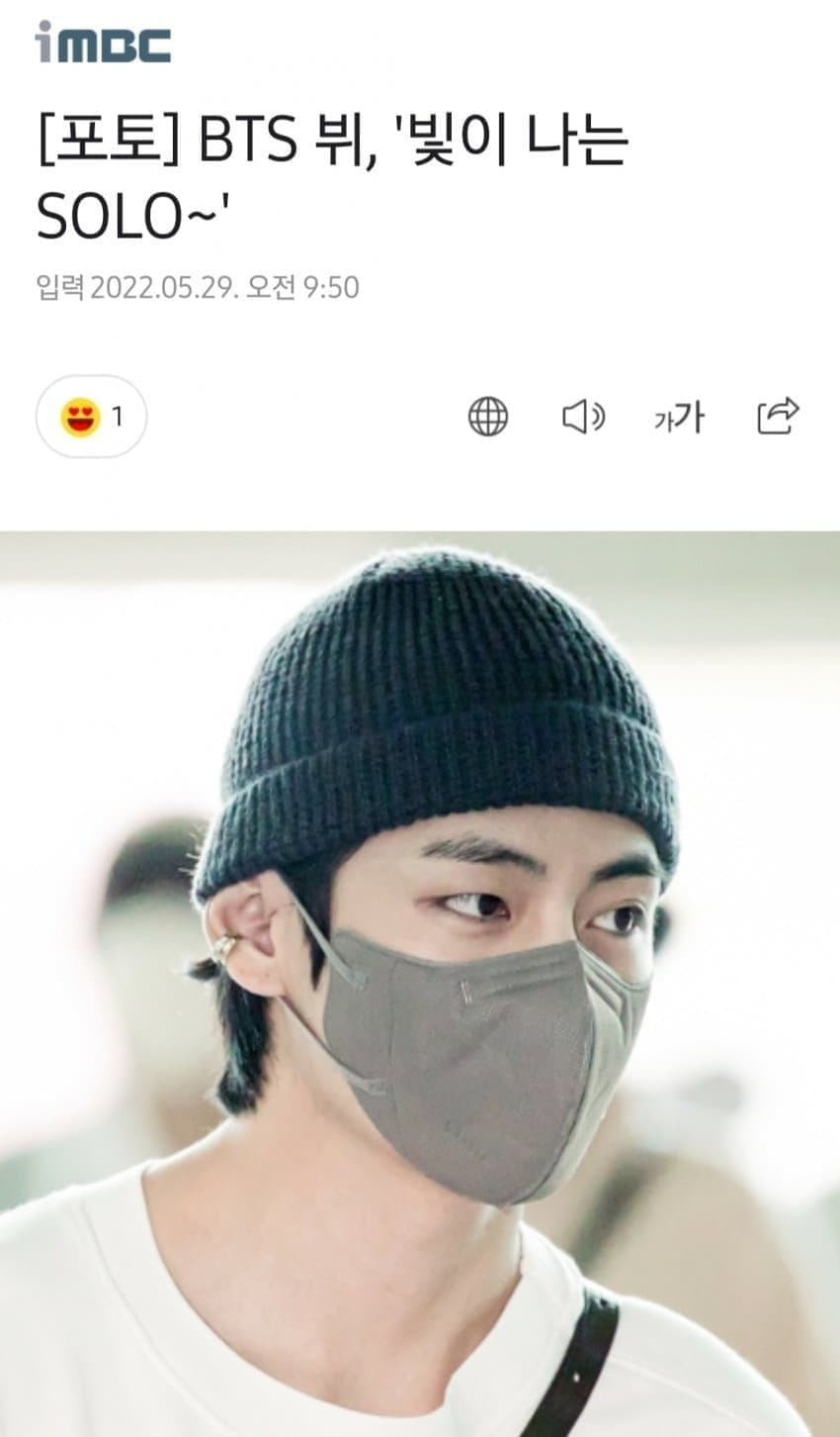 On an online community, netizens are laughing at the headline made by a journalist writing about V in relation to his dating scandal involving Jennie. In the article showing the photos of V taken at the airport for his recent departure, the headline reads: "BTS V: I'm a shining SOLO~".