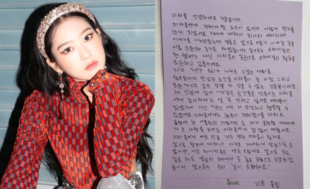 Jiho has released a handwritten letter to her fans.
