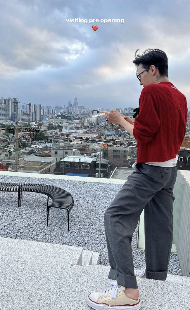 On June 25, one netizen created a post titled, "G-Dragon's outfit in the photos from today are so pretty." Here, the netizen included several photos of G-dragon that had been uploaded by an acquaintance. In the photos, G-Dragon was seen wearing a red cardigan and baggy trousers, as well as a pair of bright-colored shoes and statement accessories. In photos taken on another day, G-Dragon was seen wearing a black beanie and sunglasses, as well as a fashionable black jacket.