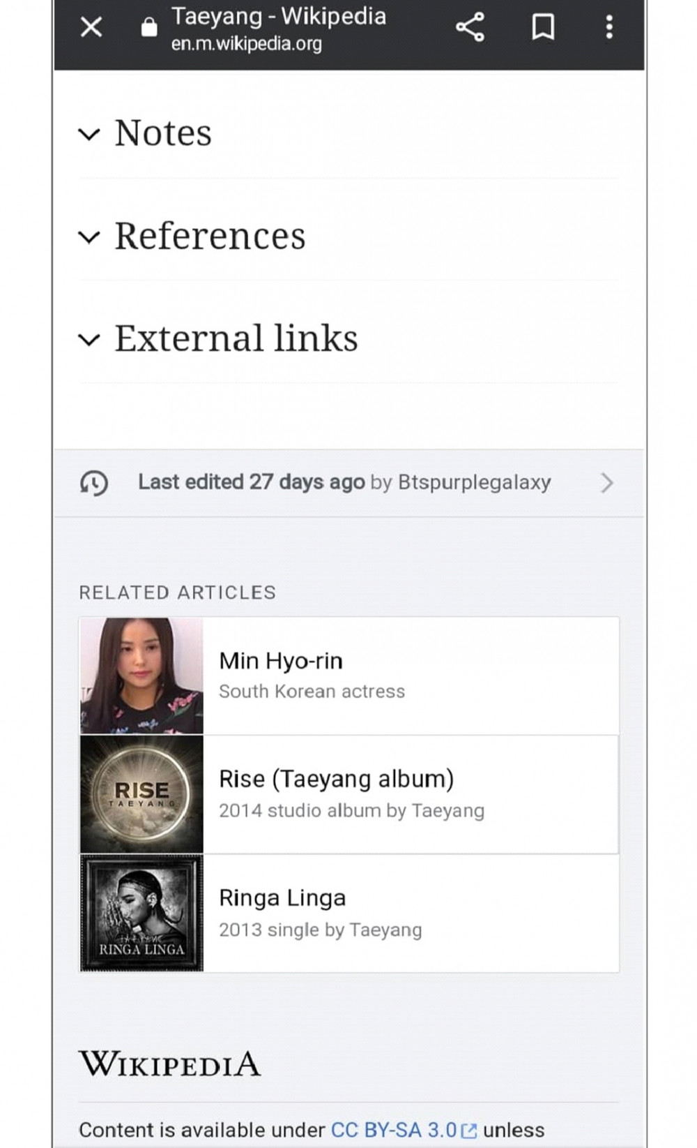 The same user also changed several things on Taeyang's Wikipedia page. (see picture below for reference).