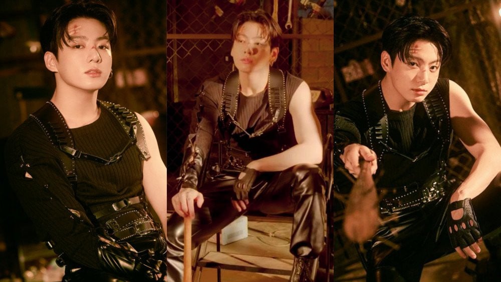 9. Season's Greetings: Known to have no fear, Jungkook flawlessly pulled off an edgy biker look in lieu of the group's season's greetings.