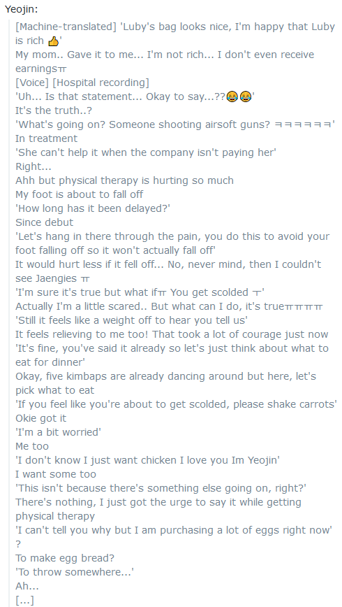 Yeojin: My mom.. gave it to me.. I’m not rich... I don’t even receive earnings. 😭