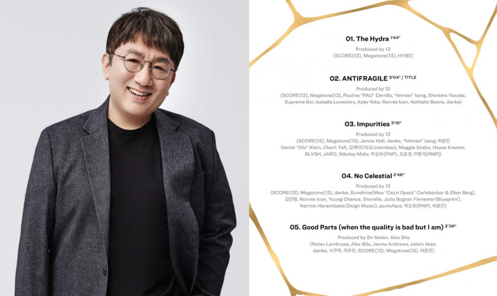 On October 3 KST, the tracklist for LE SSERAFIM's upcoming 2nd album 'Antifragile' was released. The tracklist image revealed that the mini album will include a total of 5 tracks, including "The Hydra", "Antifragile", "Impurities", "No Celestial", and "Good Parts (when the quality is bad but I am)". In particular, Bang Si Hyuk was credited as a producer in the title track "Antifragile" and B-side track "Impurities", gathering interest.