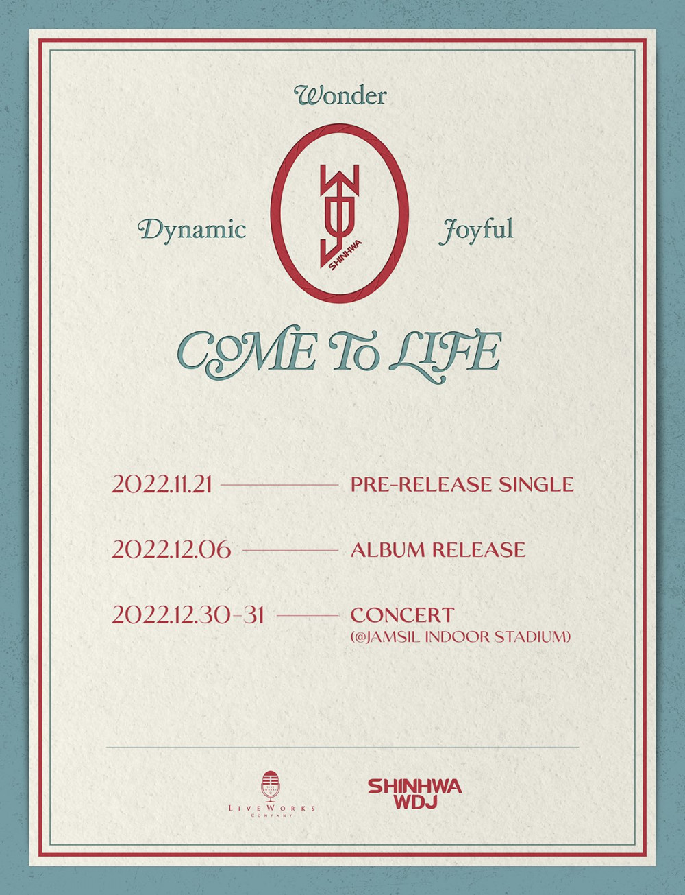As reported previously, Liveworks Company announced the launch of Shinhwa WDJ, the first-ever unit by Shinhwa in 24 years. The members of WDJ are Minwoo, Dongwan and Junjin. According to the poster, the unit will drop a pre-release single on November 21, followed by an album and a concert at the Jamsil Indoor Stadium in December.