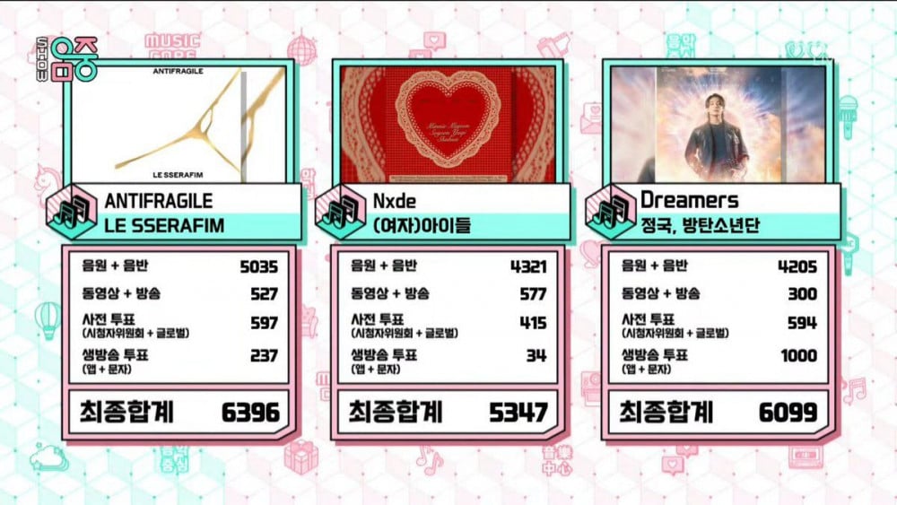 MBC's 'Show! Music Core' pulls the statistics from Circle Chart (previously known as Gaon Chart). According to Circle Chart, HYBE has yet to submit the "Dreamers" music video for review by the board so it was excluded from the scoring hence receiving 0 points.