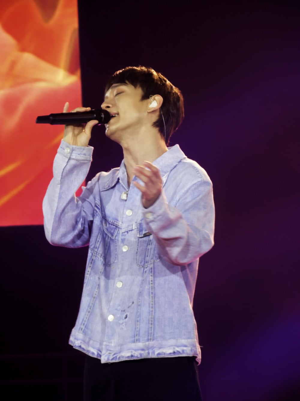 The loud screams from the Filipino audience persisted as Chen took the stage after XIumin. First, he gave a powerful performance of his most recent song, "Last Scene," the title track from his recently released third mini-album. The stylish song "I Don't Even Mind," which featured his upbeat, crystal-clear voice, was the next song he performed.