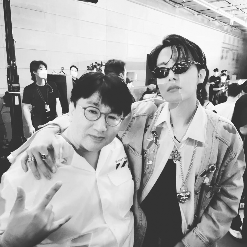 Recently, netizens noticed that Bang Si Hyuk shows much affection for the HYBE artists as his Instagram page is filled with commemorative photos with them. Netizens even commented, "I think he created Instagram just to log all the commemorative photos with HYBE idols...except a few photos, all of them are photos with HYBE idols. lol."