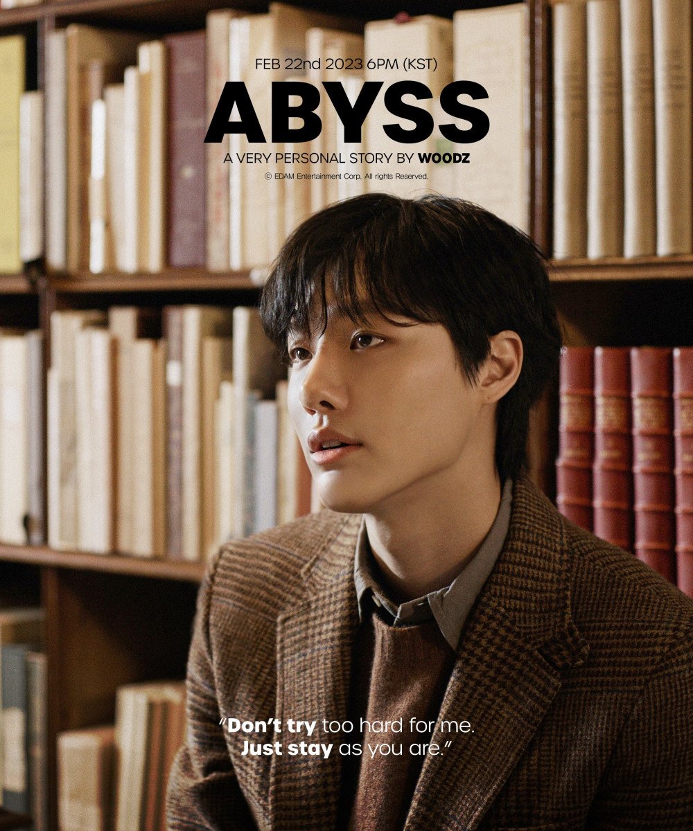 A precursor to the release of his 5th mini album coming later this spring, WOODZ's pre-release single "Abyss" will be out next week on February 22 at 6 PM KST. In a new concept photo for the single, unveiled on February 15 KST, WOODZ candidly sends the message, "Don't try too hard for me. Just stay as you are," leaving fans curious.