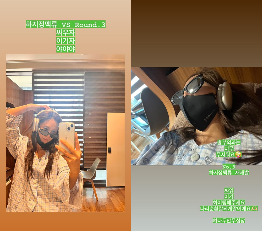 On this day, Yuri began a series of updates via her Instagram story, writing, "Varicose veins vs. Round.3 Let's fight. Let's win. Yayaya!" along with a selca from a doctor's office in a comfy-looking patient's pajamas. She then followed up with, "The thoracic clinic is scary. No. 3 varicose vein, ppplease. Fight. Win. Send me your cheers. So I can have proper blood flow in my legs. I'm actually not scared at all, nope."