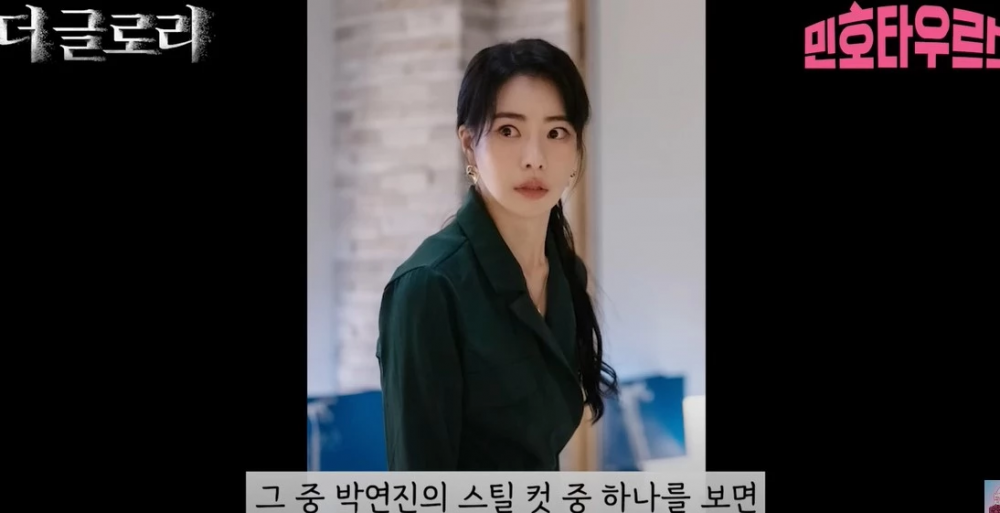 He then shares, "In the drama still cut image of 'The Glory' Part 2 that was recently released, Park Yeon Jin (played by Lim Ji Yeon) is seen wearing a deep forest green dress that highly resembles the dress that Son Myeon Oh's killer was seen wearing."