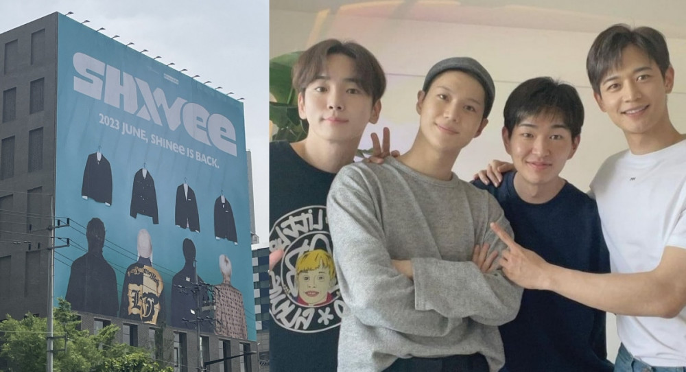 On May 21 KST, a billboard reading "2023 JUNE, SHINEE IS BACK" was seen on the side of the Megabox movie theater in Seoul's Seongsu neighborhood. In the image, the backs of members Onew, Key, Minho, and Taemin can be seen in front of jackets on clothes hangers. As a result, many fans are speculating that SHINee will be making a comeback in June with their 8th full-length album.