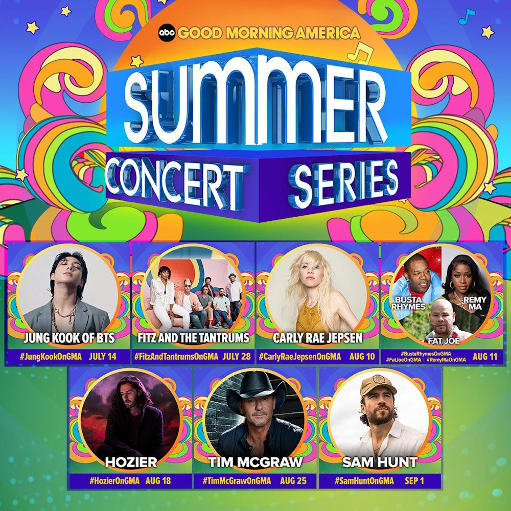 ABC morning show 'Good Morning America' revealed the lineup for this year's 'Summer Concert Series', and Jungkook of BTS will be kicking the series off on July 14 KST. Following Jungkook, Fitz and the Tantrums, Carly Rae Jepsen, Fat Joe, Remy Ma, Busta Rhymes, Hozier, Tim McGraw, and Sam Hunt.