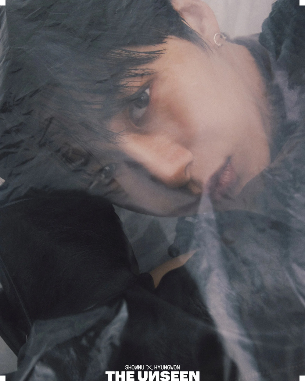 In the teaser images, Shownu and Hyungwon take on a chic, dark concept in black and white and get wrapped up in latex. 'The Unseen' is the MONSTA X duo unit's debut mini album, and it's set to drop on July 25 KST.