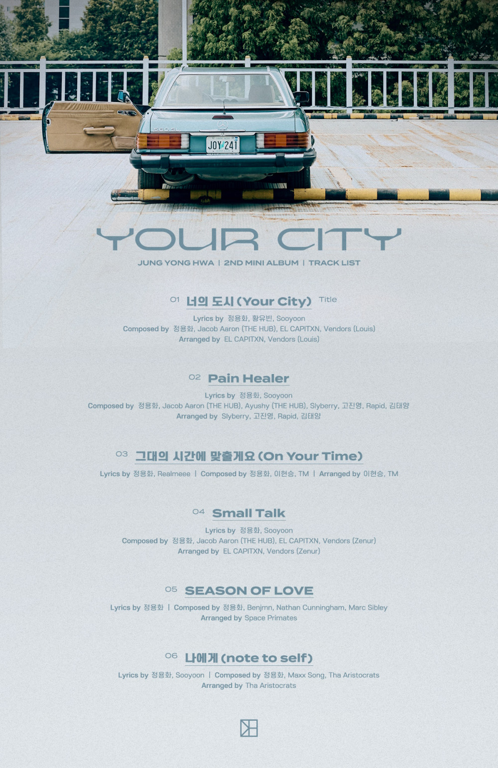 The teaser image below features an abandoned car in a retro concept as well as the tracks "Your City", "Pain Healer", "On Your Time", "Small Talk", "Season of Love", and "Note to Self". 'Your City' is Yonghwa's 2nd mini album, and it's set to drop on September 14 KST.