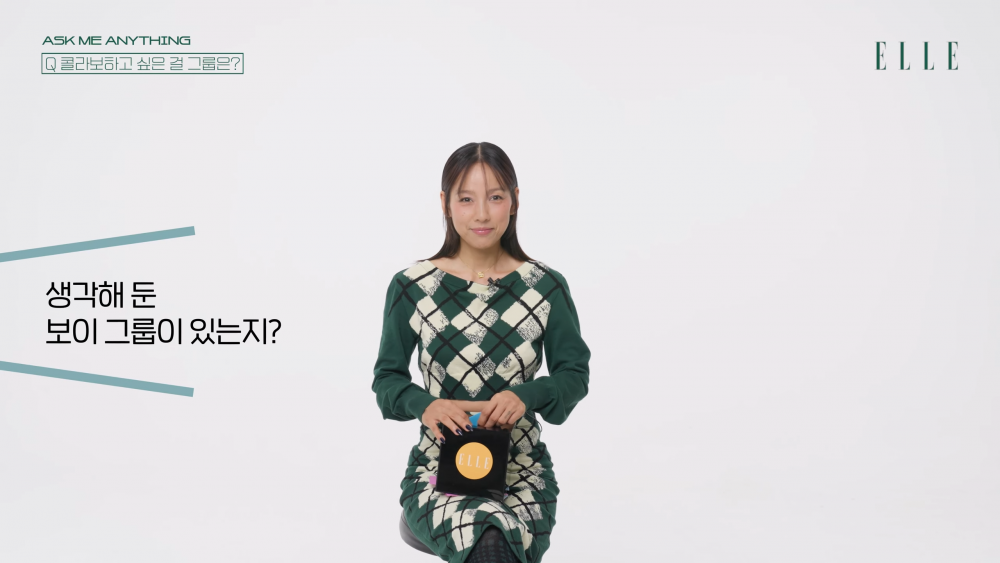 One fan asked, "You said watching pretty girl groups is therapeutic. Is there an idol group you want to collaborate with?" Lee Hyori replied, "I don’t want to do it. I don’t want to be compared. What can I do among those young girls? They should do their music and I should do mine. I’d love to collaborate with young male singers. That’s what I want to do! I’d like to try something new with music."
