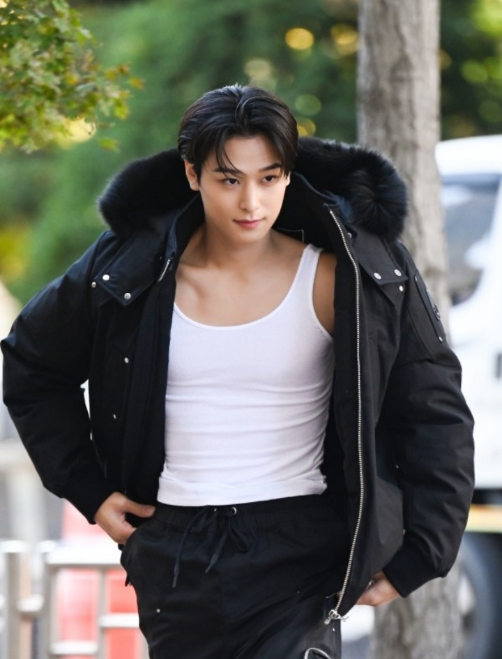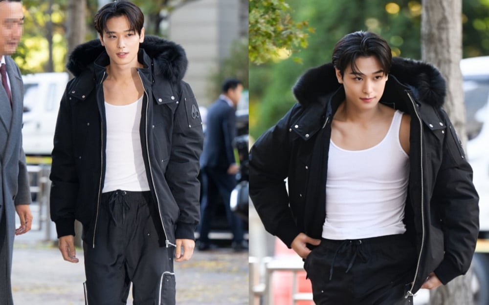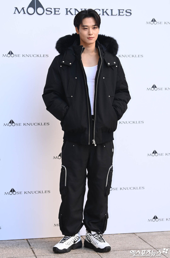 On November 7, Juyeon appeared at the Hyundai Department Store Mokdong brand in Yancheon-gu, Seoul, for the sportswear brand 'Moose Knuckles' photocall event. Gear in a glossy black jacket matched with black cargo pants from Moose Knuckles, Juyeon cut a dashing figure that significantly stirred the internet.