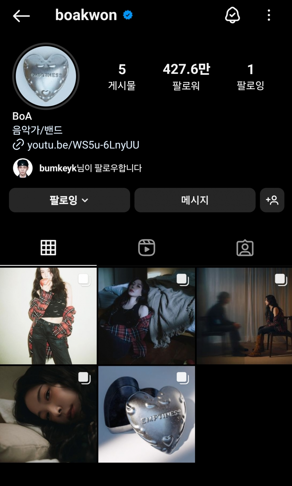 Recently, fans discovered that BoA had cleared her Instagram page, leaving only teaser photos of her upcoming single 'Emptiness.' Additionally, she unfollowed everyone except her late brother, Kwon Soon Hwon, who passed away in 2021 after battling cancer.