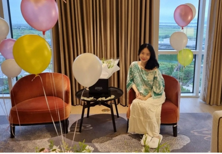 The photos show Lee Jung-hyun enjoying her baby shower at a luxury hotel. To celebrate her second pregnancy, the room was decorated with balloons and flower bouquets, catching the eye of many.