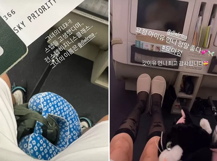 On August 4, various online communities were filled with photos posted by staff members showing their business class seats. These staff members expressed their gratitude towards IU for her thoughtful gesture.