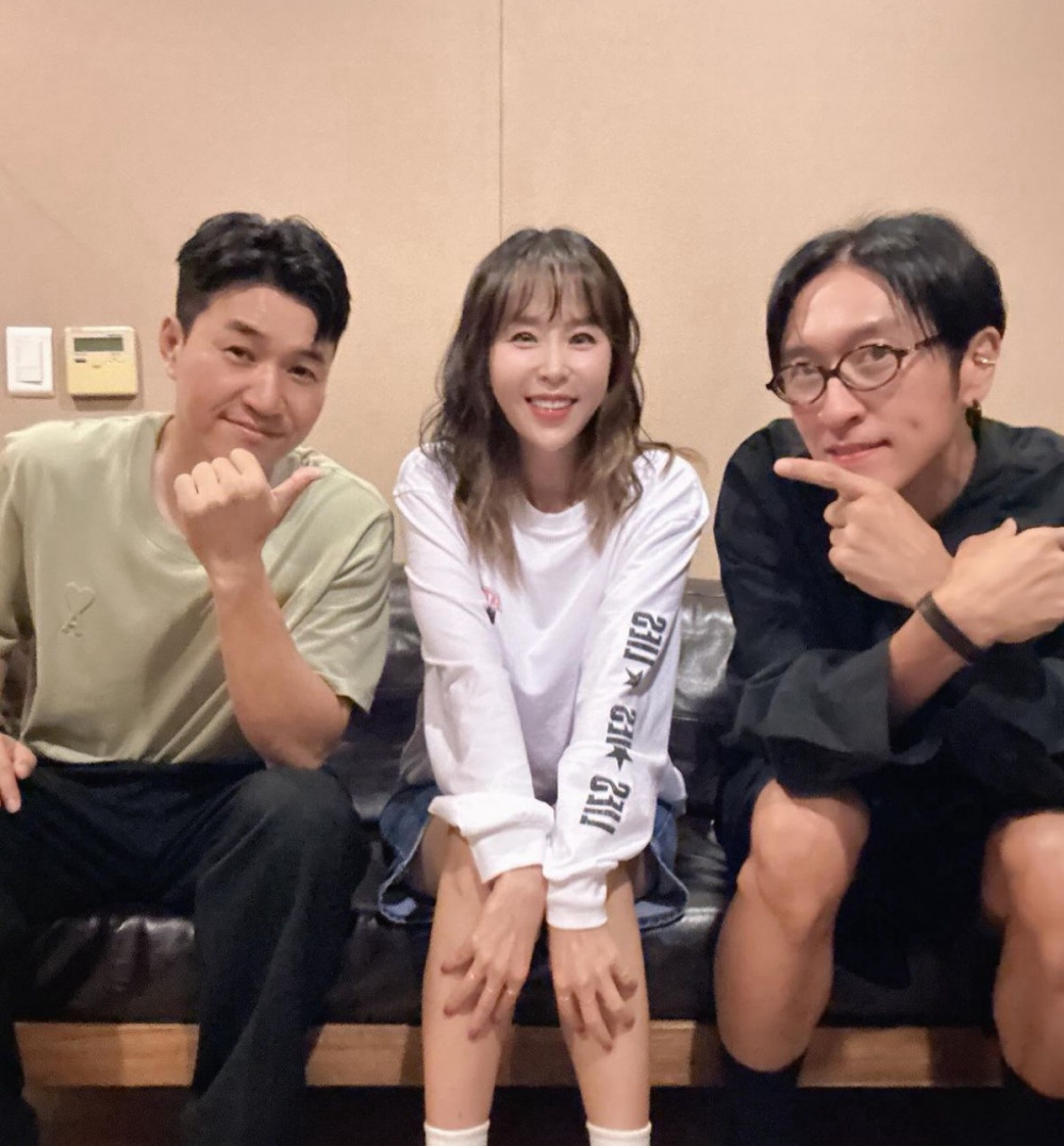 On August 22 KST, Shinji of Koyote took to her social media to share a photo with fellow members Kim Jong Min and Baekga, accompanied by the caption, “Finished recording the new song.”
